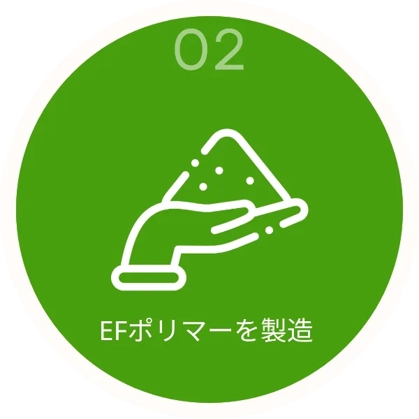EFポリマーは果物の皮や搾りかすなど、従来廃棄されてきた作物残渣をアップサイクルした、100%自然由来の超吸水性ポリマーです。農地に適用することで水不足などの厳しい環境下でも生産コストを抑えながら収穫量の向上につながります。また、この農地で育てられた作物の残渣をアップサイクルすることで、新たなEFポリマーの製造に役立てることができます。