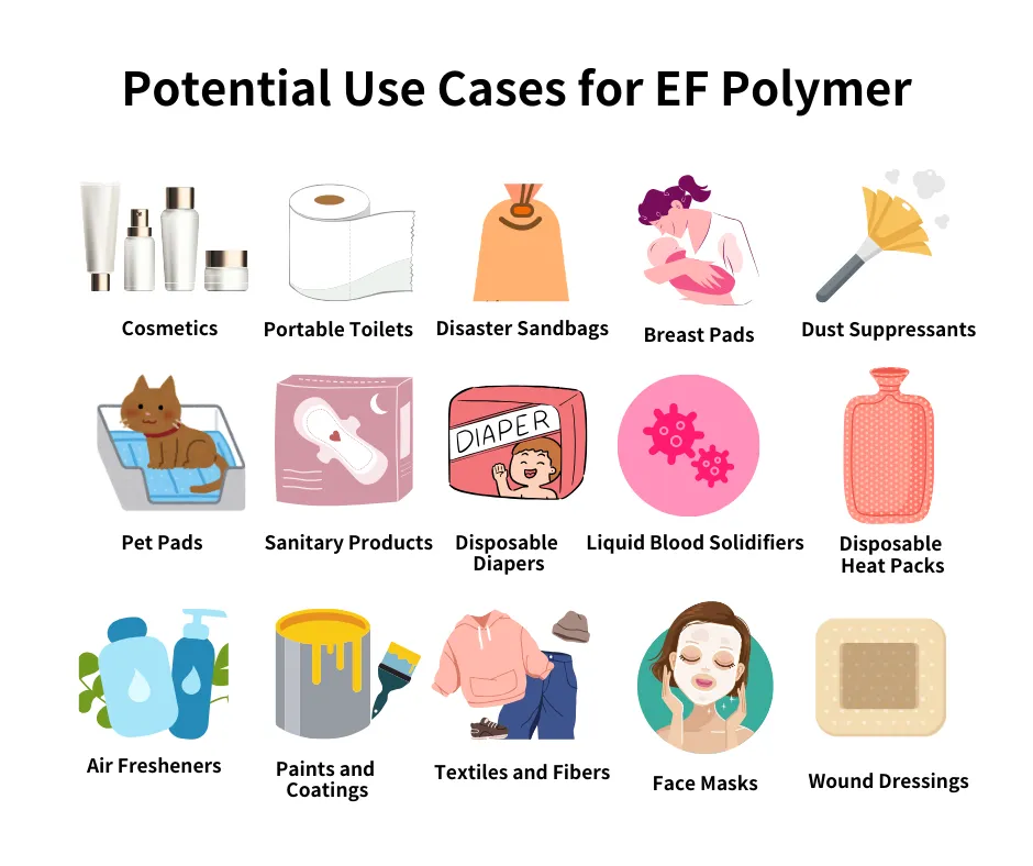 While EF Polymer is highly marketed for agricultural applications, water-and water-repellant retention, its potential extends far beyond. Just as petroleum-based polymers find diverse uses across industries, EF Polymer could unlock new varieties across a variety of fields.