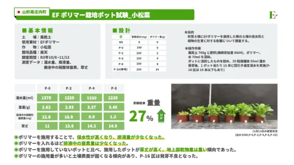 山形県 栽培ポット試験 小松菜