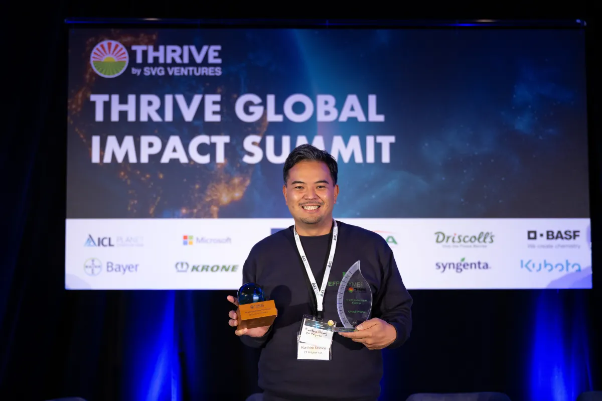 THRIVE Global Impact Summitは、農業やアグリフード分野における先進的な製品やサービスに着目するものとして、北米、欧州、APACなどから企業の経営層をはじめ、投資家、スタートアップ企業など500人以上が参加する世界有数のイベントです。SVG Venturesが主催し、KagomeやKubota、Intel、Bayer、BASFなどグローバル企業がパートナー企業として参加しています。